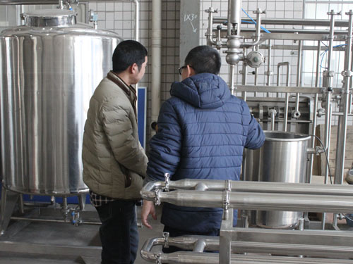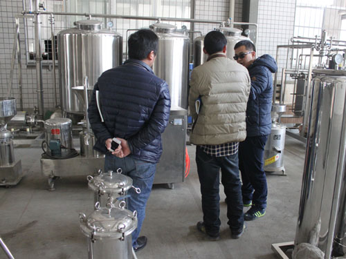 2015年3月2日,河南客戶自主創(chuàng)業(yè)需要采購一套豆?jié){生產(chǎn)線設(shè)備,來我公司考察并與業(yè)務(wù)員進(jìn)行具體需求的洽談。下圖為業(yè)務(wù)員向客戶講解工廠設(shè)備: