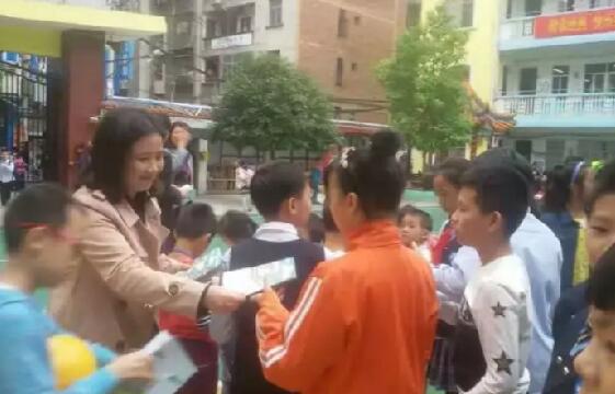 項(xiàng)目負(fù)責(zé)人解冰為學(xué)生發(fā)放兒童食品安全手冊(cè)