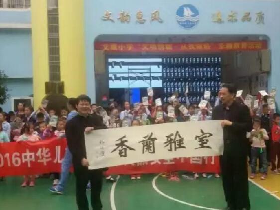 兒慈會(huì)工作人員為學(xué)校和愛(ài)心人士捐贈(zèng)書(shū)法